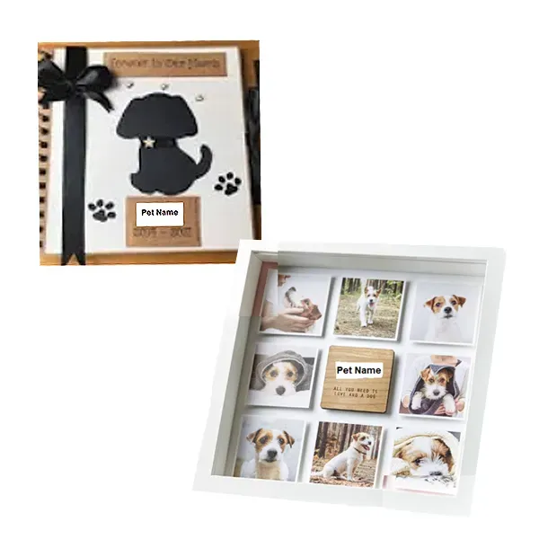 - Optional wording (default reads ‘You left paw prints on our heart')