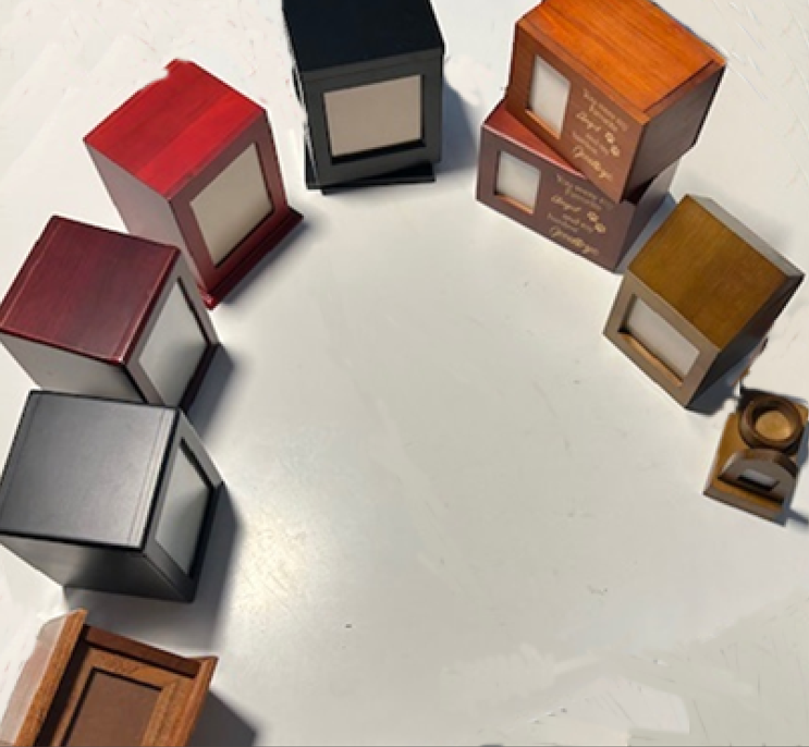 - Return to pet parent in wooden urn with photo frame