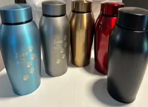 A customisable metallic urn that lets you cherish your angel forever. Ideal for displays and pet parents who want a lasting and personal tribute to their beloved companion. This package includes: