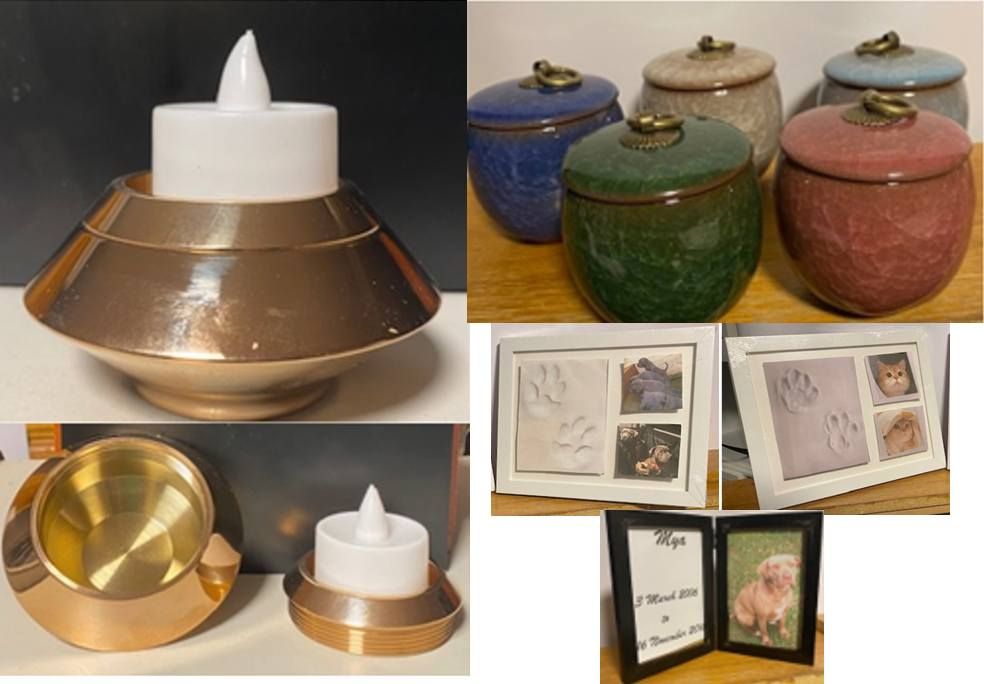 - Return to pet parent in pottery or metallic urn, choice of colours